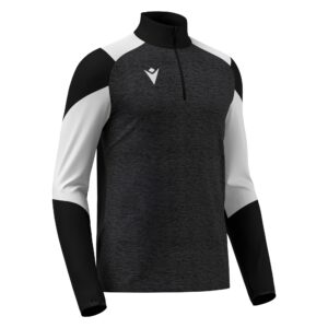 Training top in Per-fleece fabric. Featuring a collar with 1/4 nylon zip with auto-locking slider and a melange texture on the front. It sports micromesh inserts on the shoulders for enhanced breathability. The lycra cuffs include thumb holes. Available in 8 colour versions.