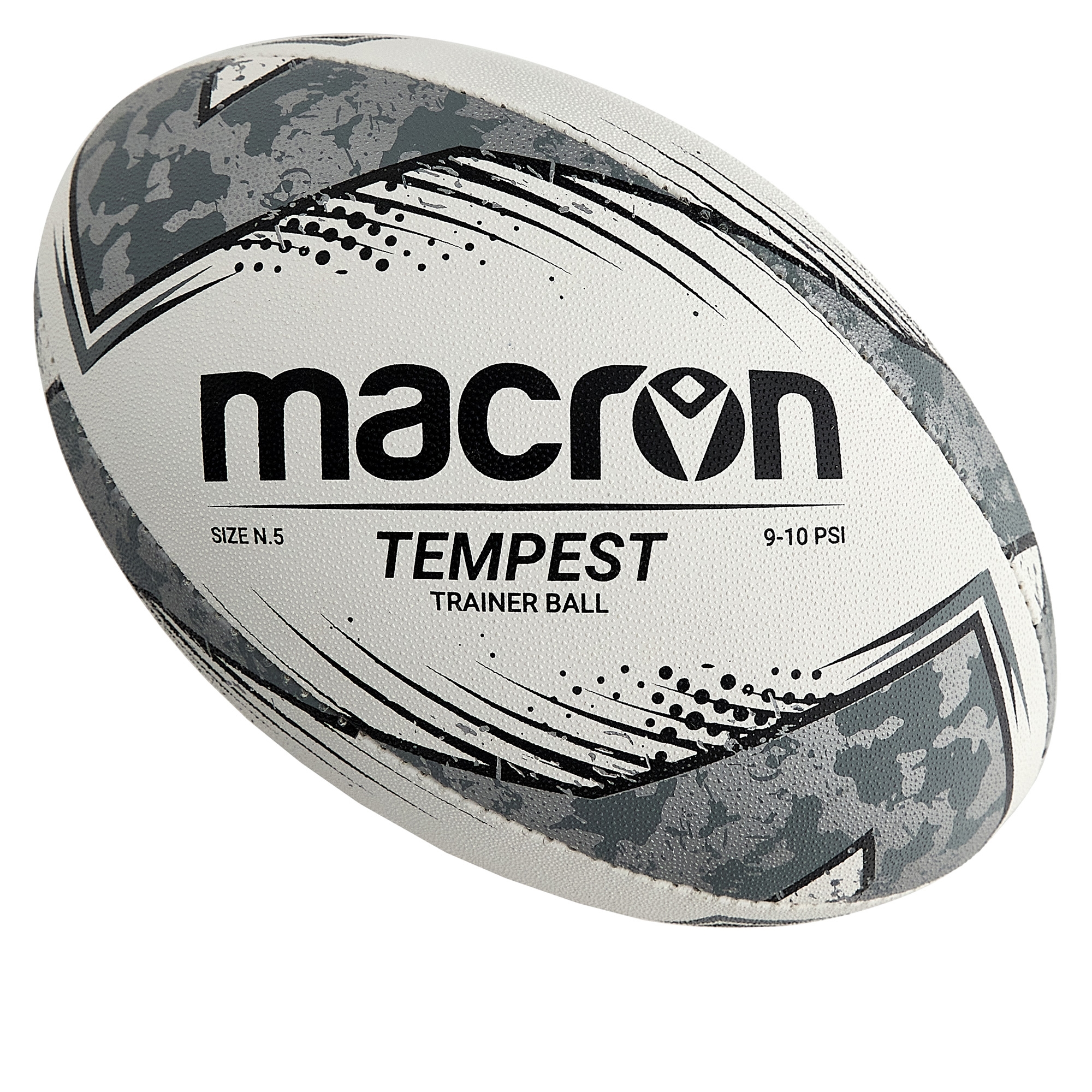 Rugby training ball, compliant with World Rugby specifications. Hand-stitched with 3-ply laminated construction and a latex bladder. Triangular surface grip pattern with two different height grips in durable rubber which aid grip and water dispersion. The elliptical valve placed in the seam ensures optimal flight and spin.